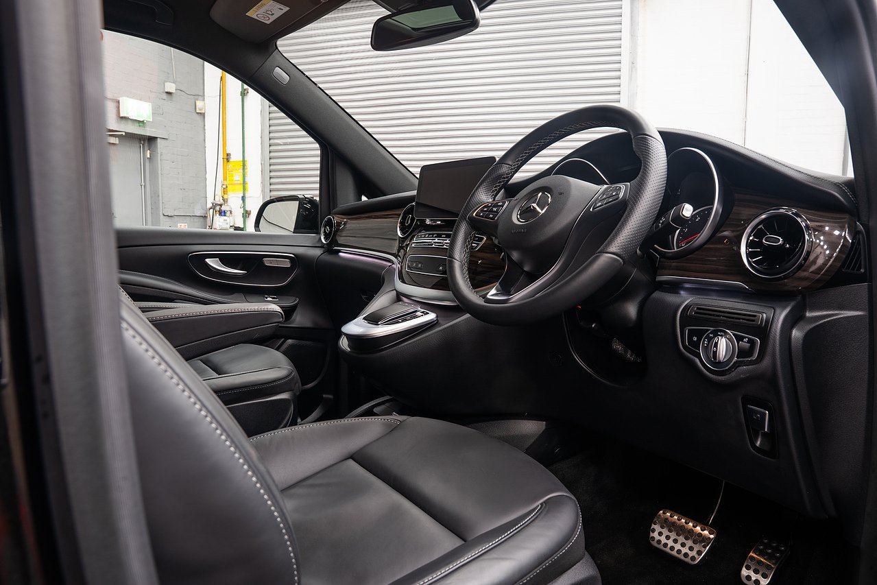 With an exceptionally low mileage of just 2786 miles for its 2022 registration, this Mercedes-Benz V Class V220d Sport represents a superb example of this versatile vehicle. Boasting a powerful yet efficient 2.0L Euro 6 diesel engine, this Sport trim model offers comfortable seating for up to eight occupants. Its MOT is valid until November 2026, and it has had only one owner since new, underscoring its excellent provenance. Notable features include an iPod, iPhone, and Bluetooth interface with hands free functionality, heated front seats for added comfort, and THERMATIC 3 zone automatic climate control for consistent cabin temperature front and rear. Maneuvering is made easier with Active Parking Assist and a reversing camera, while the panoramic glass sunroof adds a sense of spaciousness.