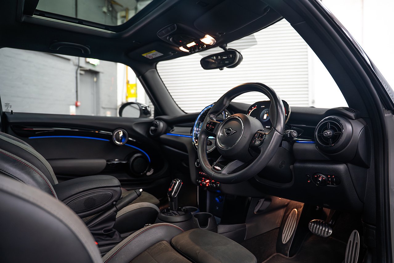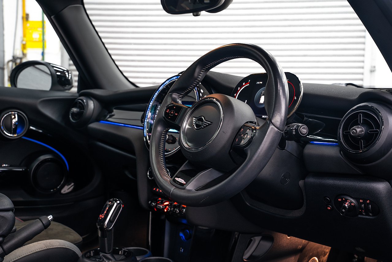 This MINI comes with a range of standard specifications, including LED headlights, DAB radio, and sport seats. Optional extras such as adaptive suspension and a panoramic sunroof make this car even more luxurious.