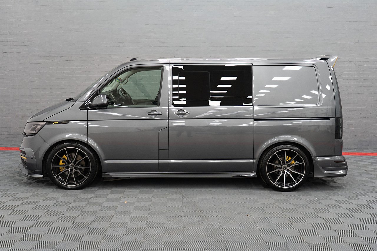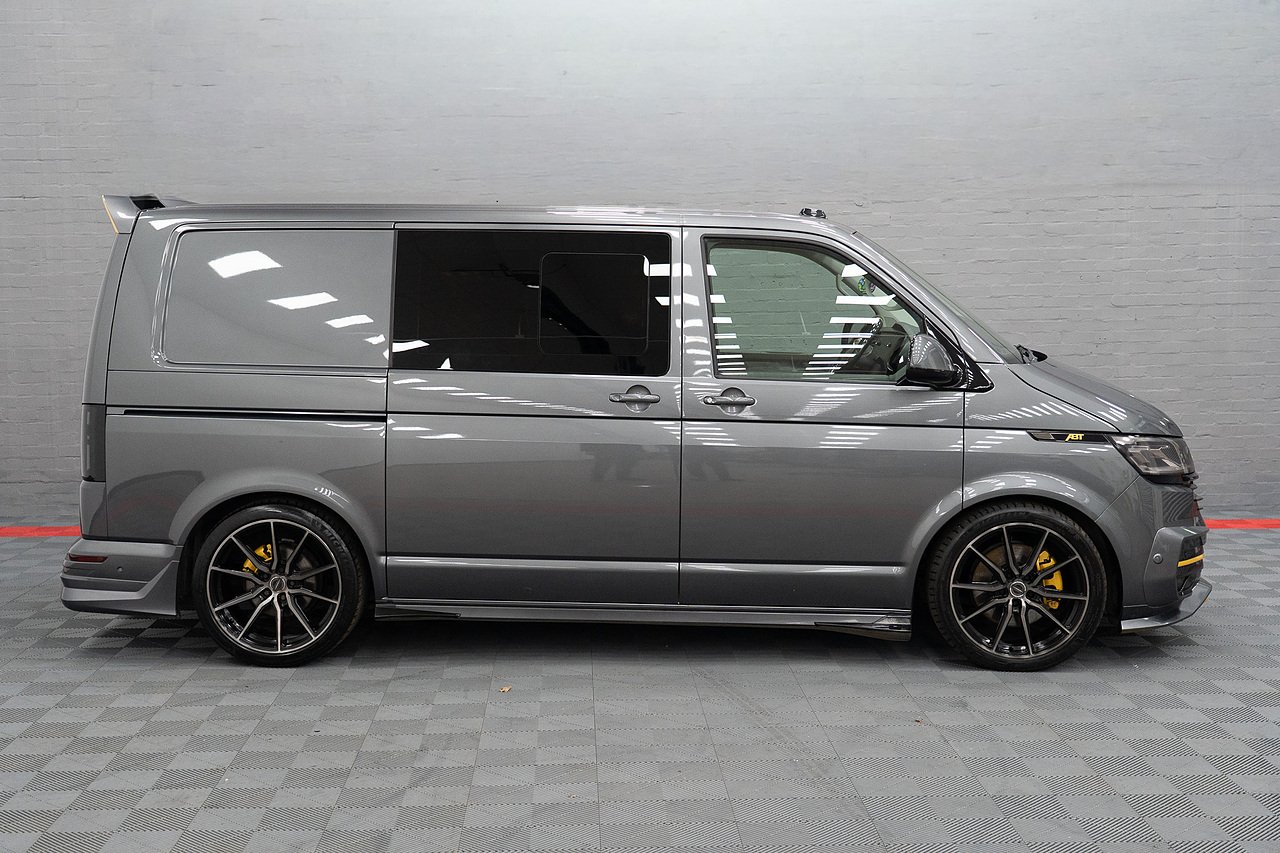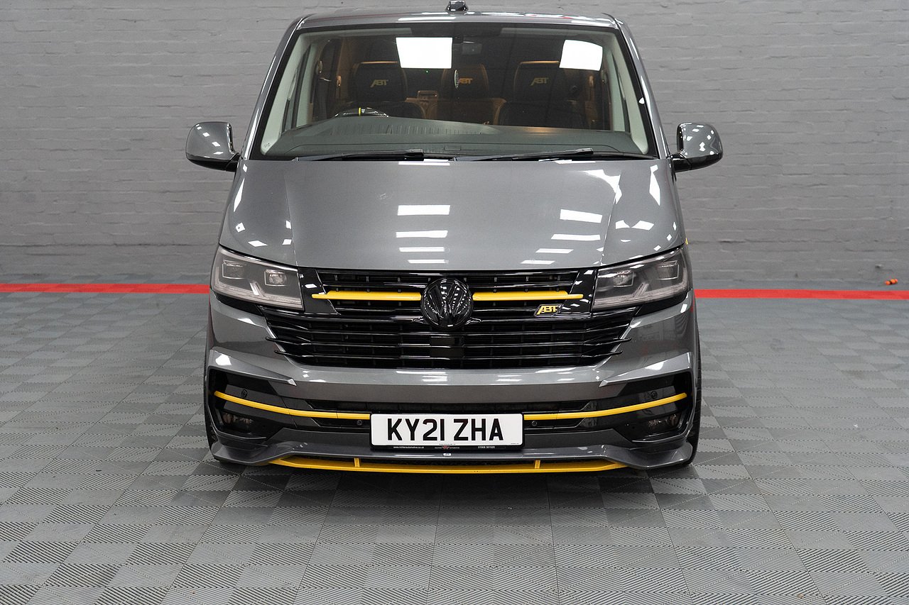 Supplied by ourselves originally, In Stock and Ready to go, this STUNNING ABT T6.1 199 DSG 4 Motion Highline Factory Kombi in Indium Grey and Porsche Saffron Yellow, Twin Electric Doors, LED Lights, Electric Tailgate, Towbar, ABT Front Skirt, ABT Front Grille, ABT Side Skirts, ABT Rear Skirt, ABT Rear Wing, Bilstein B14 Coilovers, Vossen Staggered 20" Wheels Wrapped in Michelin Rubber, Exhaust Sound Booster, ABT Tuning to 235PS, Full Leather and Alcantara Interior, Carbon Steering Wheel, Full Carpet Lining with LED Roof Lights, Financee Available PX Welcome