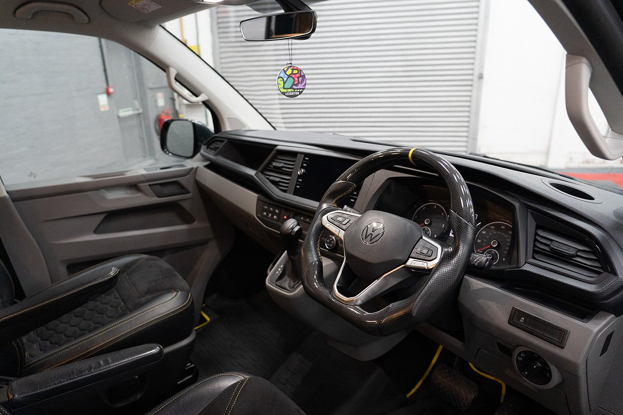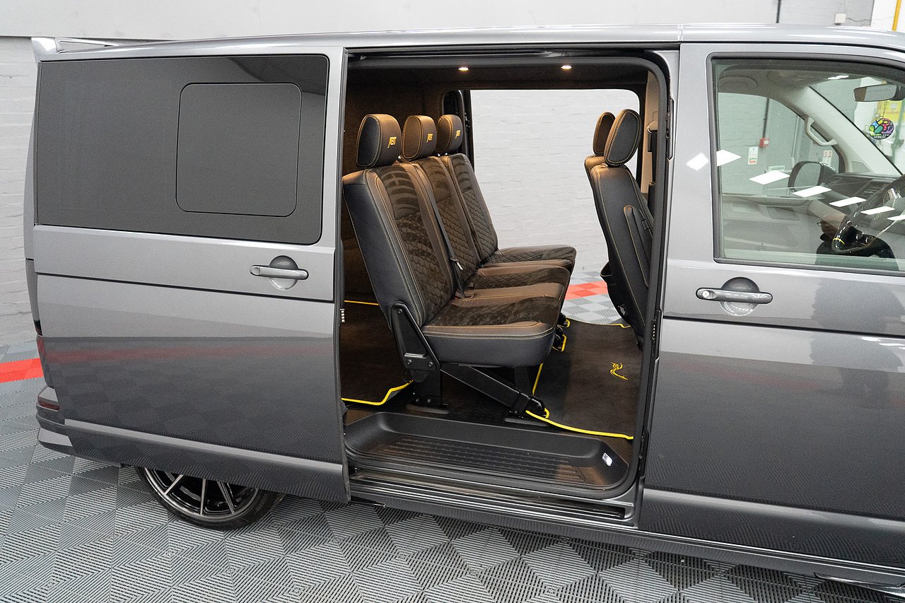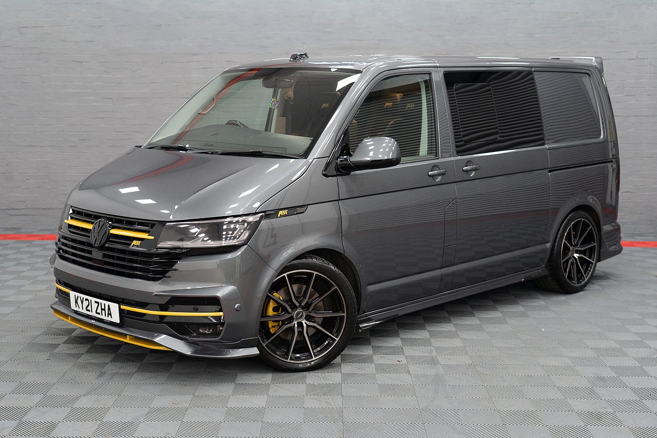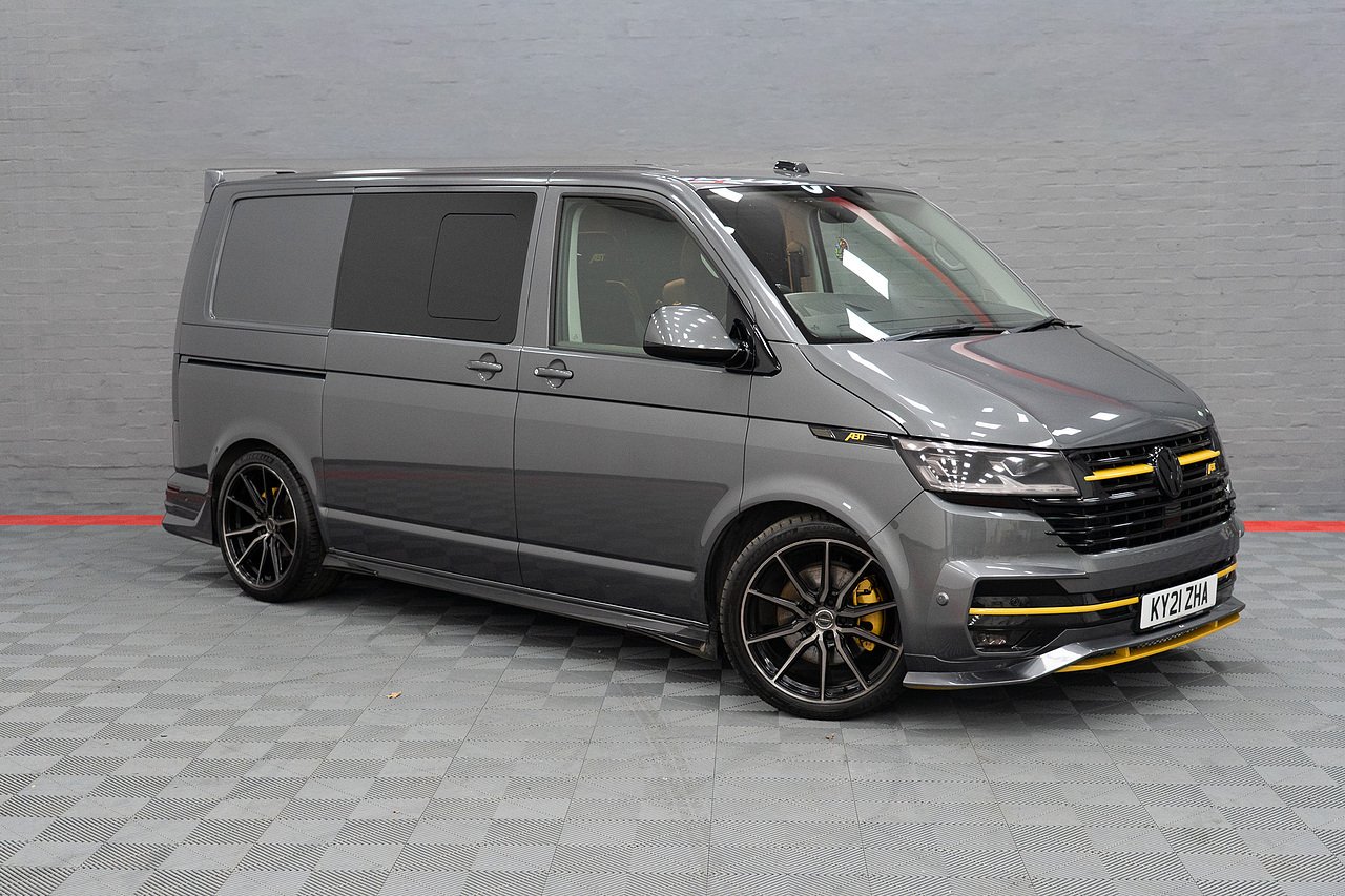 Supplied by ourselves originally, In Stock and Ready to go, this STUNNING ABT T6.1 199 DSG 4 Motion Highline Factory Kombi in Indium Grey and Porsche Saffron Yellow, Twin Electric Doors, LED Lights, Electric Tailgate, Towbar, ABT Front Skirt, ABT Front Grille, ABT Side Skirts, ABT Rear Skirt, ABT Rear Wing, Bilstein B14 Coilovers, Vossen Staggered 20" Wheels Wrapped in Michelin Rubber, Exhaust Sound Booster, ABT Tuning to 235PS, Full Leather and Alcantara Interior, Carbon Steering Wheel, Full Carpet Lining with LED Roof Lights, Financee Available PX Welcome